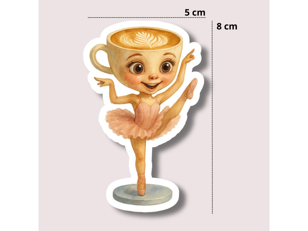 Vnies trochu absurdného umenia do svojho každodenného sveta! Tento set 3 ks originálnych samolepiek s postavičkou Balleriny Cappucciny je ideálny doplnok na notebook, fľašu, hrnček či mobil. Postavička z virálneho trendu talianskeho brainrotu v podobe rozkošnej baletky s hlavou cappuccina prinesie úsmev kamkoľvek ju nalepíš.
