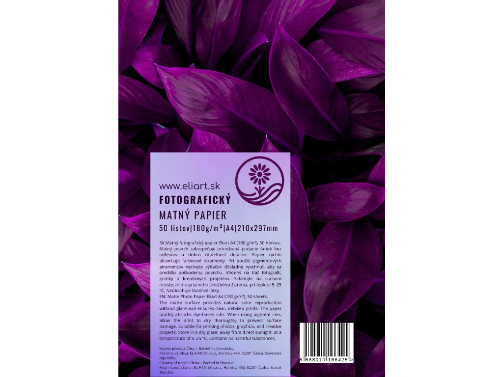 Matný fotografický papier Eliart A4 – 180 g/m² | 50 hárkov
