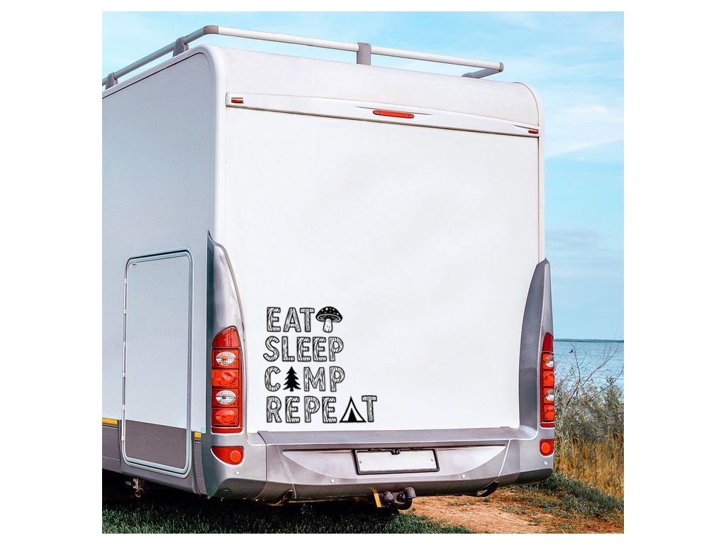 Ak miluješ prírodu a voľnosť na cestách, táto nálepka je pre teba. Eat Sleep Camp Repeat – jednoduché heslo pre tých, čo vedia, že najlepšie dni sú tie strávené pod holým nebom. Ozdob svoje auto a ukáž, kam patríš.