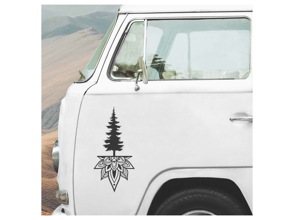 Na aute pôsobí tento motív prirodzene a zároveň hlboko. Môže byť tvojím osobným symbolom – pripomienkou, že aj keď sa pohybuješ, máš svoje korene; že aj keď ideš dopredu, môžeš ostať v pokoji. Vynikne na svetlom aj tmavom povrchu, hodí sa pre milovníkov prírody, hôr či severskej estetiky.