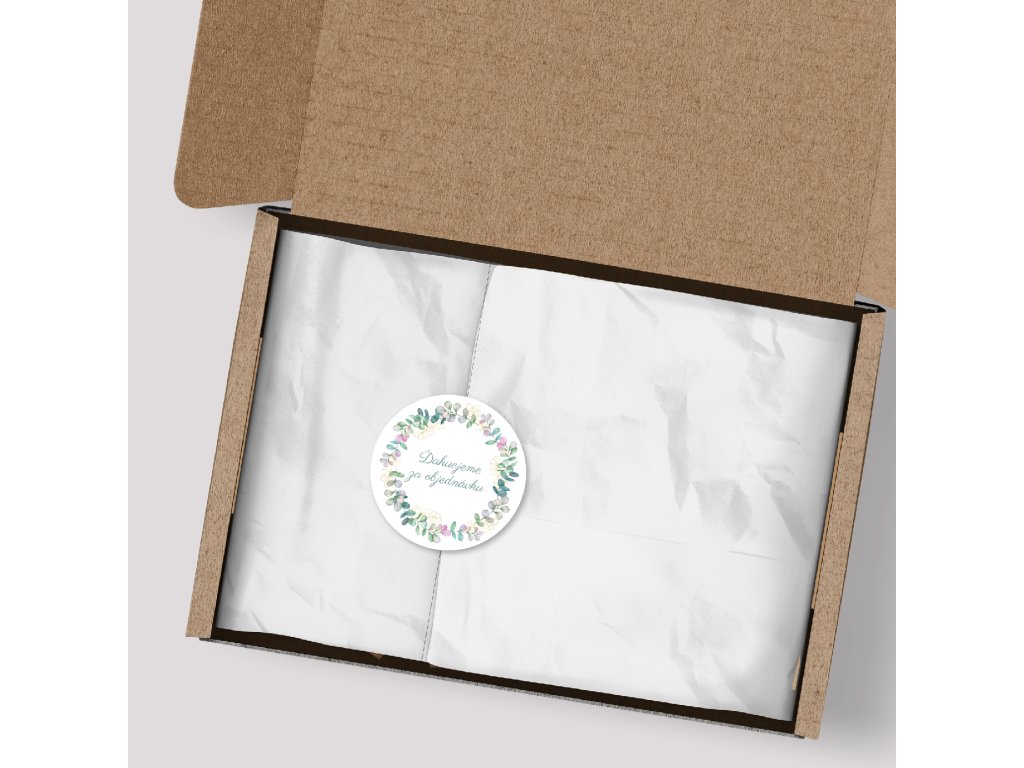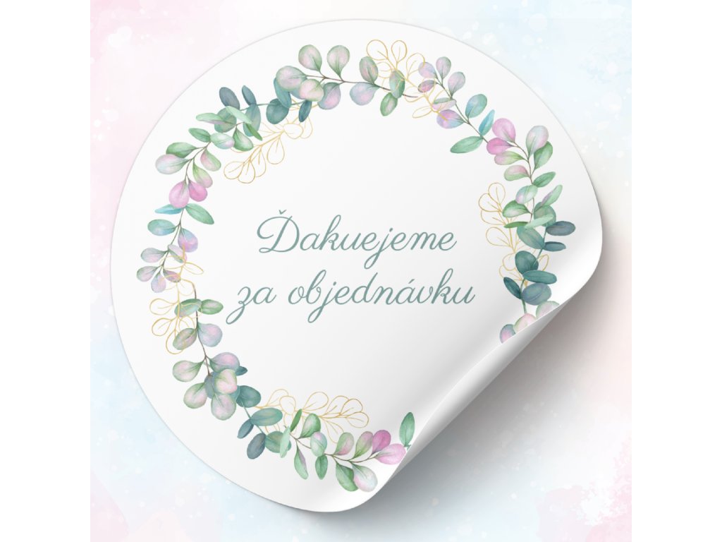 🌿 Dodajte svojim balíčkom šmrnc! Nálepky “Ďakujeme za objednávku” s jemným eukalyptovým vencom pôsobia elegantne a zanechajú vo vašich zákazníkoch príjemný dojem.