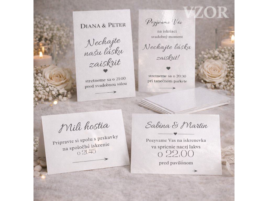 Táto kartička je určená pre páry, ktoré chcú tlač vlastného dizajnu – či už ide o sprievodnú kartičku k svadobným oznámeniam, informáciu pre hostí, harmonogram, pozvanie na večerný program alebo iný svadobný detail.