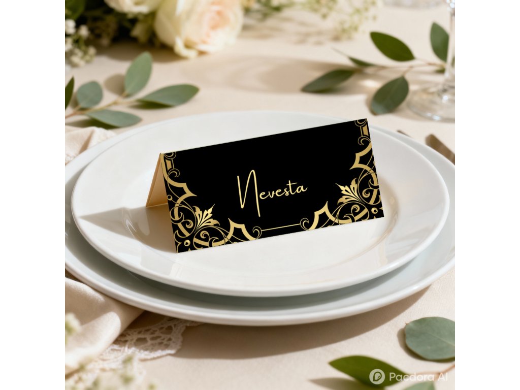 Pozývajte svojich blízkych k stolu s eleganciou a štýlom, ktorý si zaslúžia na vašom veľkolepom dni. Naša svadobná menovka na stôl v čiernej farbe je nielen praktickým, ale aj nádherným doplnkom, ktorý pridáva k svadobnej výzdobe ten pravý lesk. Navrhnutá s láskou a pozornosťou k detailu, táto menovka je ideálnou voľbou pre páry, ktoré hľadajú spojenie tradície s moderným a elegantným dizajnom.