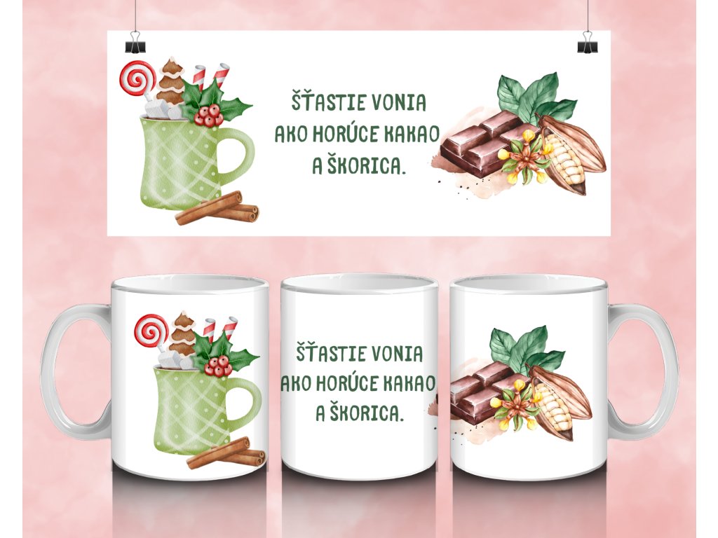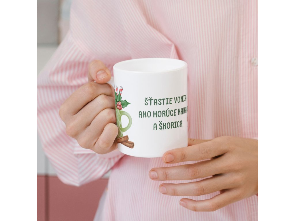🎄 Vianočný hrnček „Šťastie vonia ako horúce kakao a škorica“