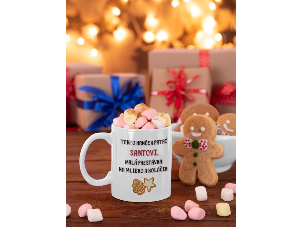 „Tento hrnček patrí Santovi. Malá prestávka na mlieko a koláčik.“